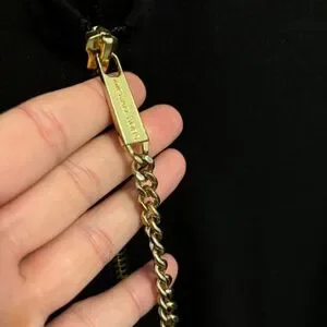 I worked in the event planning business, so black was my Go-To! Perfect, comfortable top for work. Please note the gold has some marks just from general wear, shown in photos. And the tag is loose on one side. Overall condition great!