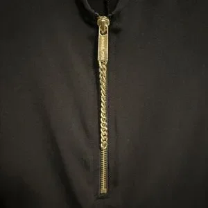 Michael Kors Butterfly Sleeve Black Top with Gold Zipper, Size L