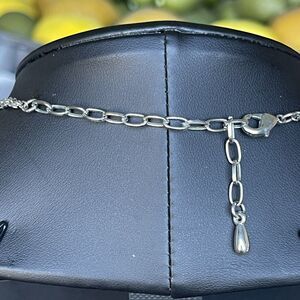 2” abalone shell pendant necklace in silver tone with clear rhinestone accent. Adjustable length up to 22”.