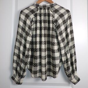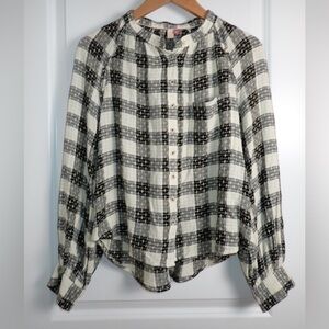 Anthropology Pilcro Breezy Button down Black Motif Long Sleeve top plaid size LP