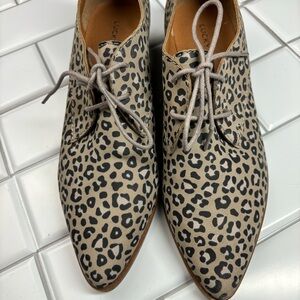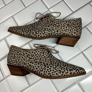 Lucky Brand Womens Erreka Lace-Up Leather Oxford Titanium Romo Leopard Size 8M