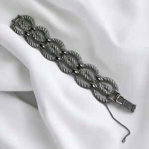 Vintage Silver Toned Textured Twisted Double Oval Rope Link Bracelet