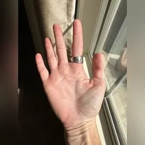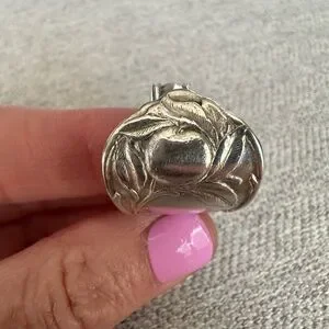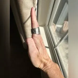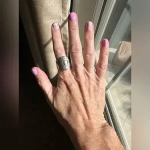 Handmade spoon ring made by me from vintage silver plated spoon. All my jewelry is made from silverware found at estate sales, since this was a used spoon there may be imperfections in the metal. This ring is a size 6.5.