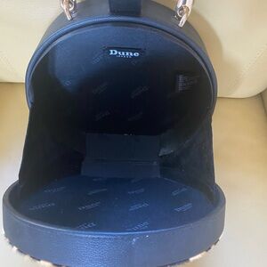 This Dune London sophisticated evening, micro box bag. Featuring the iconic luxurious tonal hardware. With a sleek grab handle. The material is pony. The height is 8 1/2 inches.