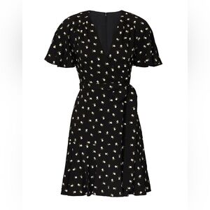 JILL STUART Womens Black Floral Short Sleeve V Neck Mini Sheath Dress Size 2 NEW
