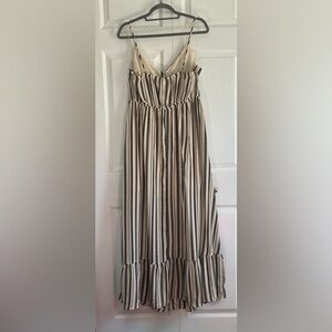 Black & Ivory striped lightweight long dress with adjustable spaghetti straps.