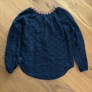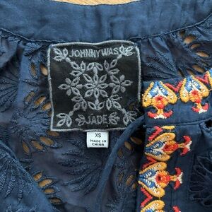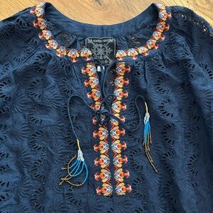 JOHNNY WAS Jade Long Sleeve Embroidered Tassel Tie Eyelet Top WOMEN'S XS