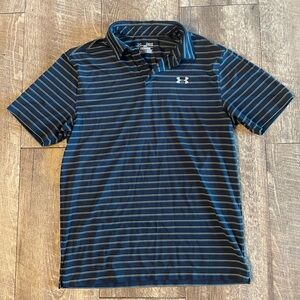 This is a men’s Under Armour polo. It is blue and green striped. It is a size medium. I purchased for my significant other and he was not fond of the stripes. It sat in our closet and was only worn once or twice. If you have any questions please let me know. Thank you for looking at my listing!