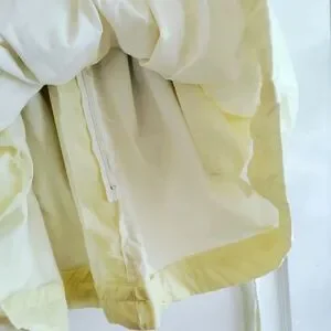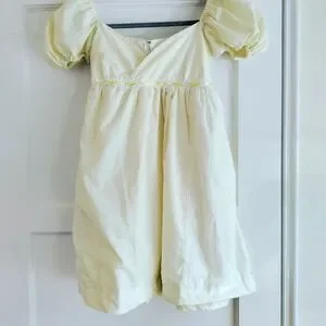 Adorable yellow and white striped puff sleeve babydoll dress. Ties in the back, trimmed with lace and yellow ribbon. Fully lined, with pockets. Not perfectly sewn, but you will look perfectly cute!