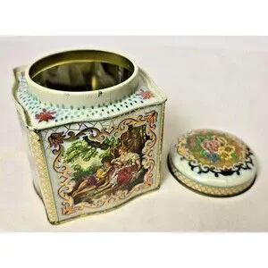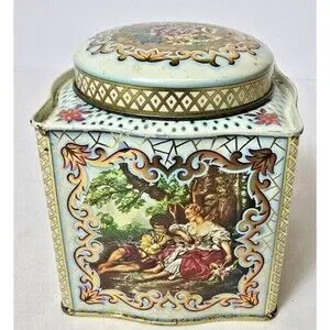 Vintage Daher Biscuit Tin Romance In The Forest Scene 4 1/2"
