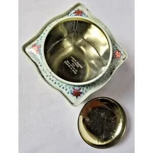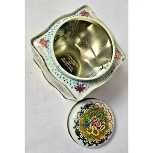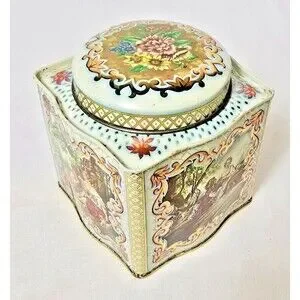 This vintage Daher biscuit tin features a charming romance in the forest scene, measuring 4 1/2 inches in diameter. Made in the United Kingdom, this collectible item is perfect for those interested in gas and oil advertising merchandise. The tin is ideal for storing biscuits or other small treats, making it a great addition to any kitchen or collection.