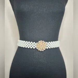 This beautiful belt will catch a lot of attention and compliments! Elastic measures approximately 25.5 inches and can stretch to about 32 inches. Buckle has rhinestones that bling and gold touches for class and sass!