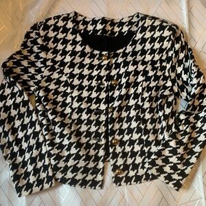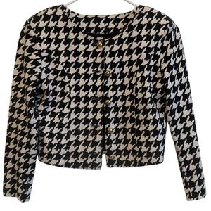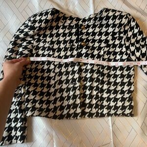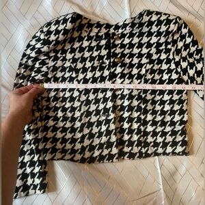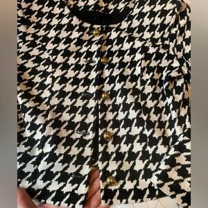 Houndstooth F21 checkered print cropped gold button black white classy jacket SM