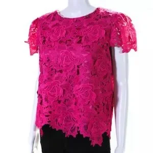 Go bright and bold this spring with this bubbly blouse from Milly! Made in a vibrant hot pink hue with a lovely floral lace design, this cap sleeve creation is sure to make you stand out all season long! From brunches to bridal showers and beyond, pair this beauty with a fun floral skirt and a colorful clutch and you'll be looking sweet and totally chic!