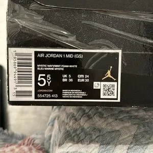 Gently used 5.5 youth Air Jordan 1 MID (GS) mystic navy/mint foam-white.