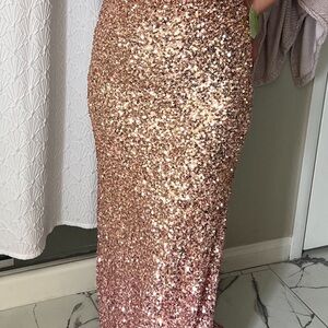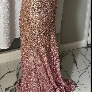 Party Gown. Ombré Pink and Gold. Sequin.