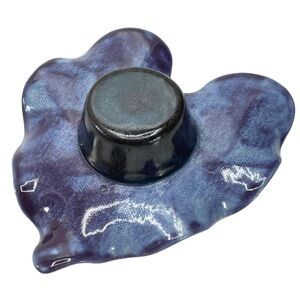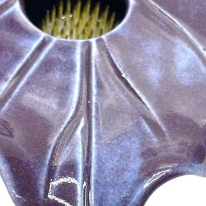 Ikebana Kenzan Flower Flog Glazed Ceramic Purple Elephant Ear Leaf Vase 6.5" x 2". This ceramic vase is in very good pre-owned condition.
