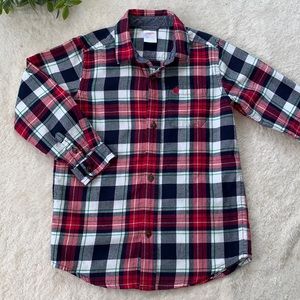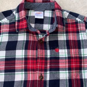 Cute, all over plaid, button up shirt in excellent, clean condition! Has a little apple on the front pocket. 🍎🍎