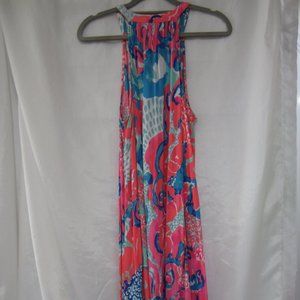 Lilly Pulitzer Dress. Small. This is the Roxi Dress, in I'm So Jelly. Color is Coral Reef. Stunning. Perfect throw and go. Pull over. Tacked drawstring neckline, leaving key hole opening. Tassel hem trim. Crinkle rayon look and feel. Bright, vibrant all over print. 100% Rayon, hand wash. Freshly laundered with no issues stains or odors, comes to you ready for immediate wear. Lightweight and airy.