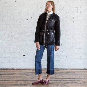 Theres nothing lackluster about this utililty jacket, with its soft sherpa fleece body and the attention to cool zippered detailing and drawcord waist.