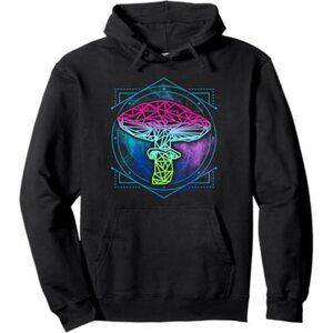 Elevate your style with our ""Psychedelic Sacred Geometry Mushroom"" hoodie! Made from soft, durable fabric, this hoodie is perfect for any adventure or a relaxing day at home. It features a spacious front kangaroo pocket, adjustable drawstring hood, and ribbed cuffs for a comfy fit. Whether you're expressing your unique vibe or simply keeping cozy, this hoodie is a must-have!