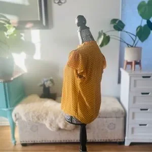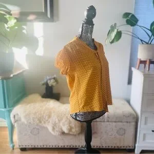 🏷️ 4/$25 Anthro Style Marigold Mustard Polka Dot Cap Sleeve Blouse Top