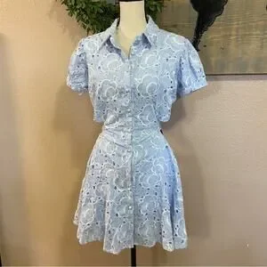 NWOT Lulus Perfectly Angelic Light Blue Embroidered Floral Mini Dress