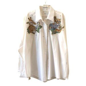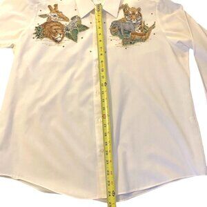 Ann Pollard Resort Collection Womens 14/16 Shirt Safari Jungle Tiger Elephant