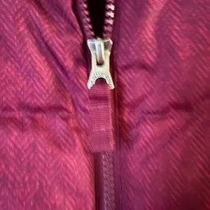This is a down puffer vest in great used condition!! It’s warm and has fleece lined pockets a pretty cranberry color. So cute!