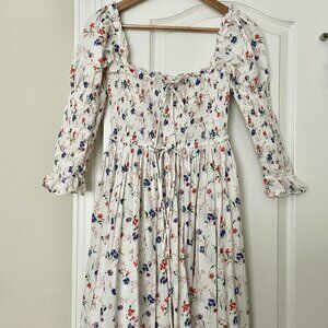 Chest/waist ~13" (very flexible fit b/c of shirred top), length ~48"