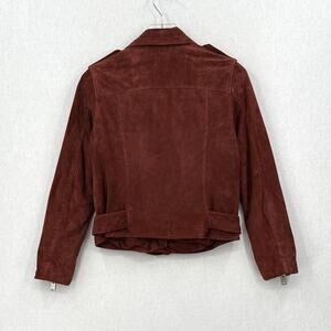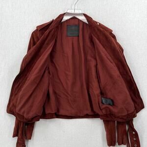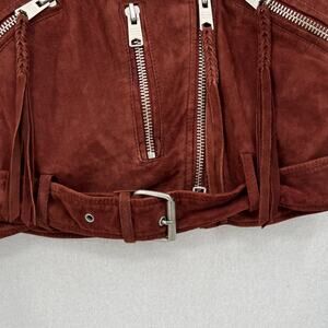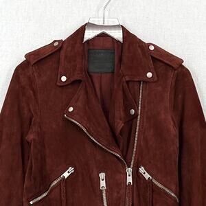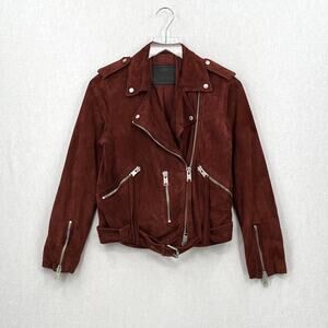 ALLSAINTS Plait Balfern Suede Biker Jacket Womens 6 Burgundy Maroon Moto Zip