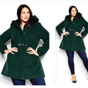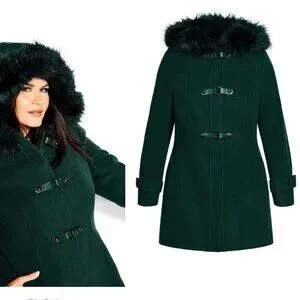 216. CITY CHIC Wonderwall NWT Alpine Green Faux Fur Trim Coat XXL