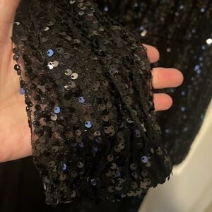 Time to dazzle with this NWT black sequins sheer topped dress. Lightly lined, stretchy, below knee fit. Perfect with tights and some kicking tall boots, heels, or a simple black sandal.
