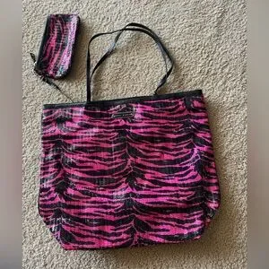 Large tote bag by Betsey Johnson. Black and pink sequined. Magnetic closure on top. Have clutch bag. Please see my other purses and make an offer. Thank u