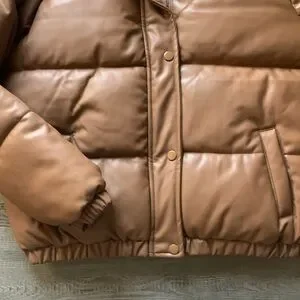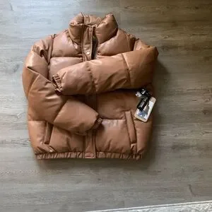 NWT Ci Sono brown vegan leather puffer jacket size small