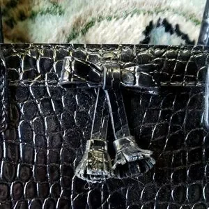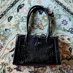 LIZ CLAIBORNE Hand Bag Faux Alligator/Croc Patent Leather Black