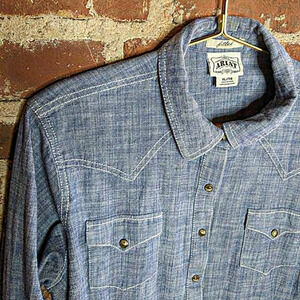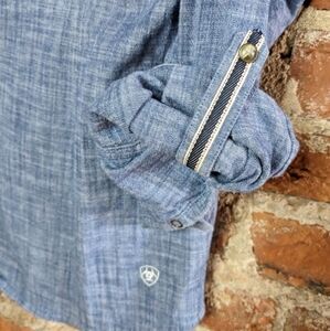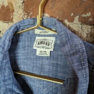 Ariat XL Fitted Blue Long Roll Sleeve Shirt w/ Snap Front & Decorative Stitching