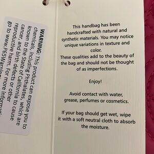 Avoid contact with water grease perfumes or cosmetics. If your bag should get wet wipe it with soft neutral cloth to absorb the moisture.