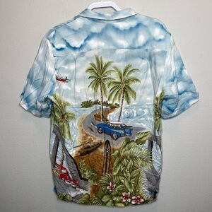 Hawaiian Reserve Retro Car Beach Scene Button Down Mens Size Large