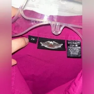 Women’s Harley Davidson Short Sleeve Fuscia Button Up Shirt Size 2W