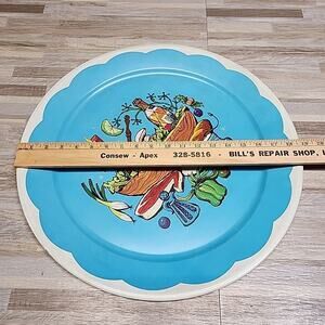 Vintage MCM Retro Metal Serving Tray Kitchen Blue Fruit for Eaton's of Canada.