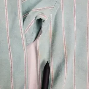 There is some light staining under the right under arm area and a small pick in the material on the back as posted in the pictures above.