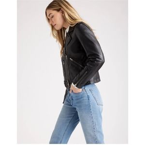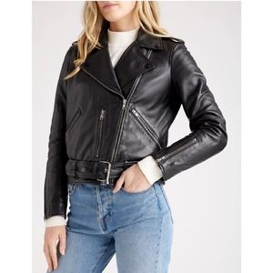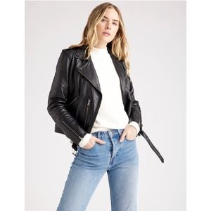 Quince 100% Leather Motorcycle Jacket Black NWT Small