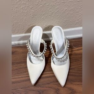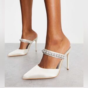 ASOS Wide Fit bridal heeled mules with pearl embellishment