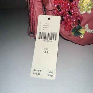 Sold Anthropologie "A" Anna Harlow Russo Leather Pink Beaded Pouch Makeup Bag
