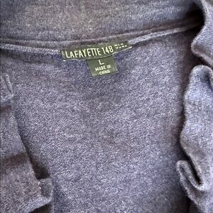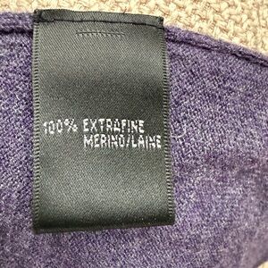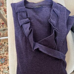 Elevate your wardrobe with this classic sweater featuring a chic asymmetrical front closure and delicate ruffle detailing. Crafted from lux oatmeal 100% Merino wool for warmth and breathability. Muted aubergine hue, classic style and exceptional quality.. Effortlessly elegant wherever you go.