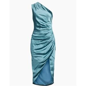 Elliatt NWT Cassini Satin One Shoulder Ruched Dress Cadet Blue XS