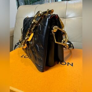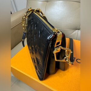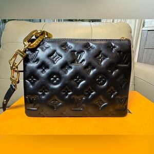 Authentic Louis Vuitton Coussin BB m embossed leather bag with the Monogram pattern.