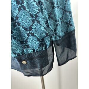 NWT Valerie Stevens Silk Blouse Blue & Black Printed Button Up Top Plus Size 22W