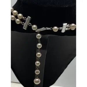 Heritage 50s Faux Pearl w/ Clear Divide Beads Necklace Double Strand 15" Grandma